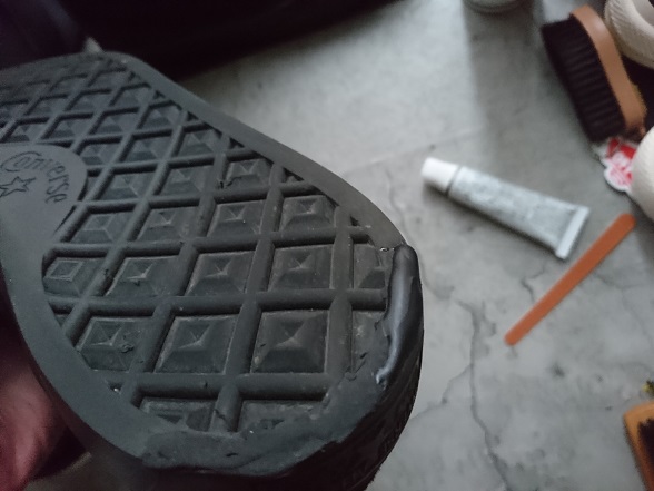 見栄えはあまり良くないですが、白ソールのヴァンズにも塗ってます。