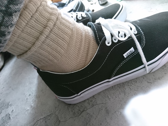 1回履いた時の足元と、靴下の写真を。