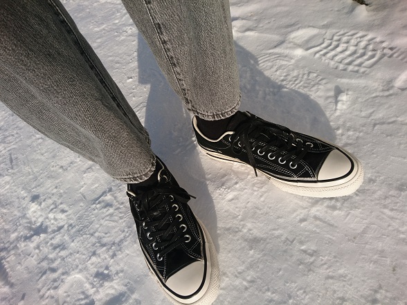 久々履いて感じたのは、最近よく履いてるヴァンズなんかよりは、合わせるパンツを選ぶこと。