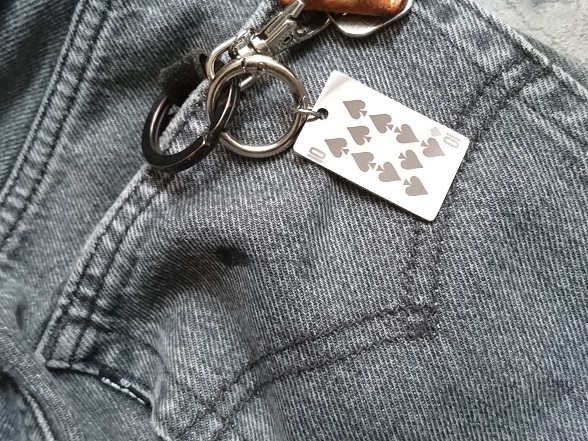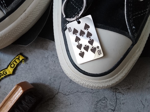 キーホルダーは、エースからキングまで種類があって、スペードの数が一番多い10に。