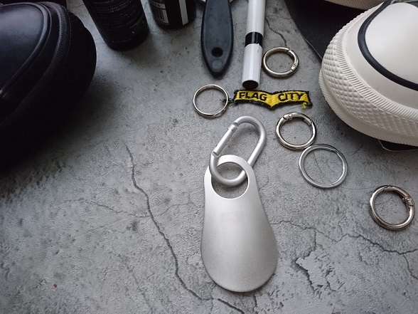 シルバーほど重たくない、こういった素材は自分に合ってる気がしていて、カラビナやキーホルダーを集めてます。